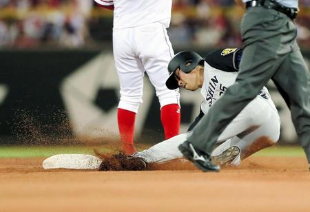 この回先頭の代打・坂本がプロ初となる右翼フェンス直撃の三塁打。この日、プロ初の1番でスタメン出場した江越が右翼線への適時二塁打で続いた。さらに、1死三塁から3番・狩野が右前適時打を放った。