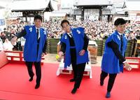青柳、竹安、坂本が大阪天満宮で「福玉まき」