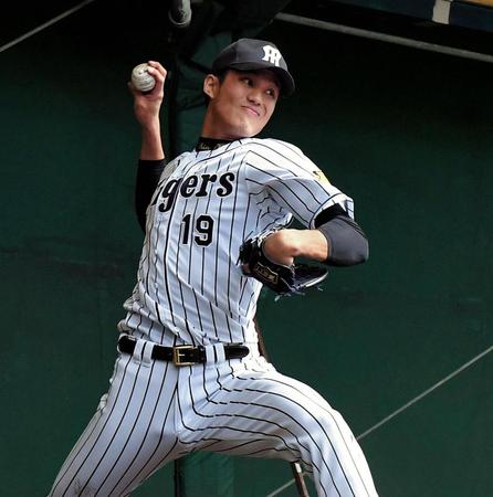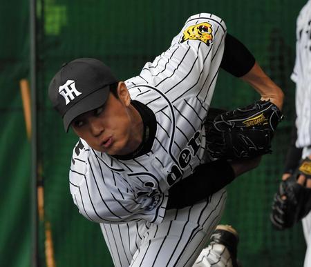 藤浪がキャンプ初日からブルペンで捕手を座らせ、投球練習を行った。