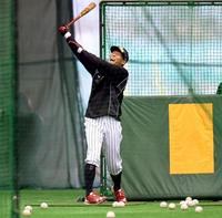 マシン相手に打撃練習する阪神・糸井嘉男=宜野座(撮影・飯室逸平)