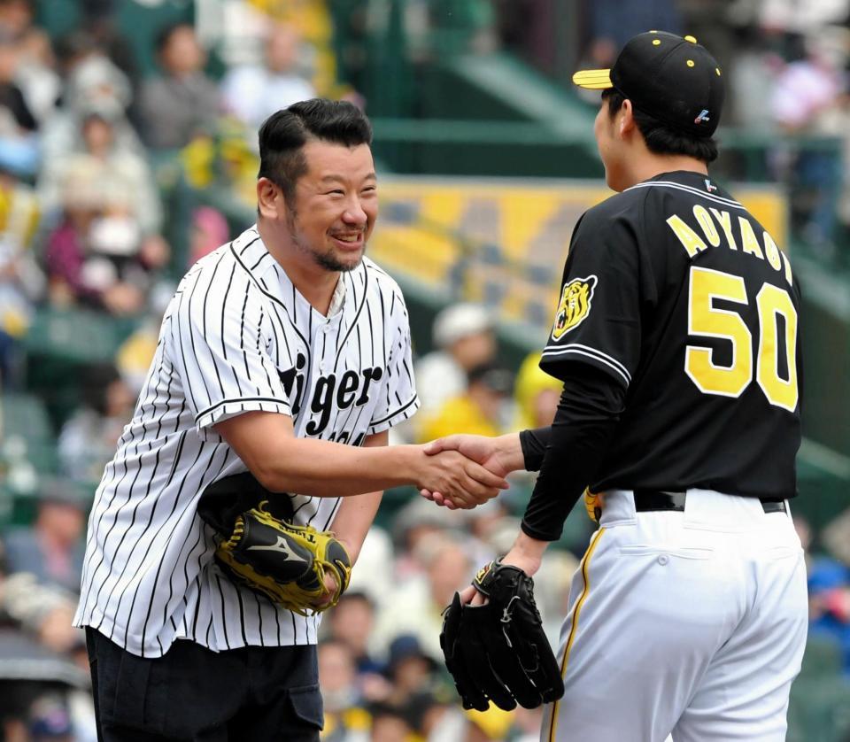 ケンコバが甲子園で始球式 8940(薬師丸)のユニホームで登場