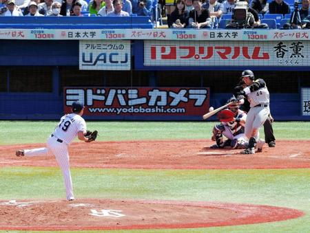 1-0の四回2死走者なしの第2打席。石川の内角直球をコンパクトに振り抜くと、打球は高々と上がり、左翼席前列に着弾した。