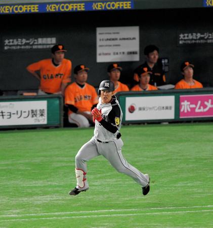 阪神は2点を追う二回無死二、三塁から6試合連続安打中の好調・鳥谷が、巨人先発・大竹の直球を鋭くはじき返し「すぐに点を取り返せてよかった。(犠飛は)最低限です」と右翼への犠牲フライで1点を返した。