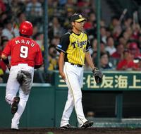 6回広島1死満塁、阪神・桑原謙太朗は広島・新井貴浩に同点の犠飛を許す=甲子園(撮影・山口登)