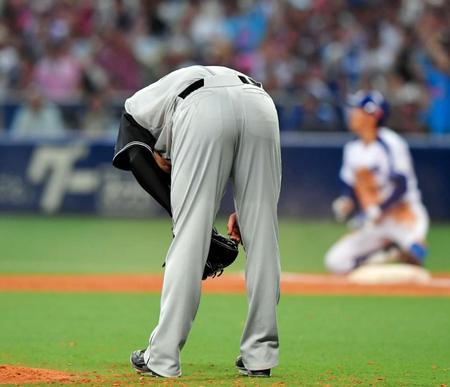 初球の直球を狙われると、打球は遊撃正面に。ハーフライナーとなった打球を、大和がファンブル(記録は失策)。不運も重なり、同点のホームを許した。直後の攻撃で打順が回り、代打を送られて降板した。104球、8三振を奪いながら、11勝目の権利を目前で逃した。