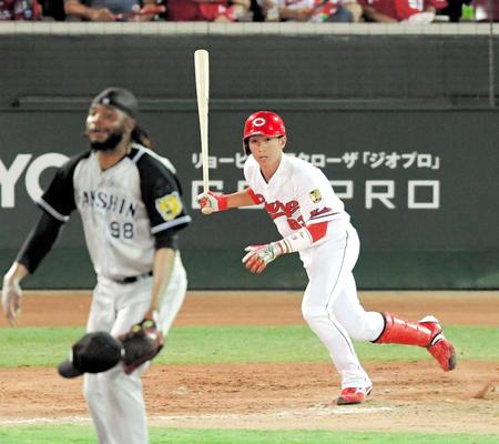 投げては先発の岩田が粘投。初回に四球と連打で1失点、五回にも四球が絡んで失点したが、強気の投球で試合を作った。六回に1死一、三塁を招くと、桑原にスイッチ。エルドレッドを遊ゴロ併殺に打ち取り、このピンチを脱した。5回1/3を投げて4安打2失点だった。