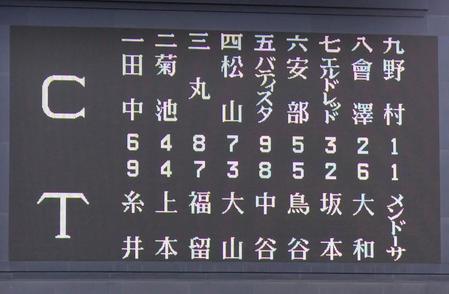 阪神は先発・メンドーサで胴上げ阻止を狙う。昨季の日本シリーズ第5戦では2番手で、5回1/3を投げて1安打無失点の快投。ポストシーズンをにらんだテスト登板の意味合いもあり、助っ人右腕には必勝が求められる。 また、打順を変更。大山が4番に復帰し、「4番・一塁」で出場する。「7番・捕手」に坂本、大和が「8番・遊撃」で出場する。