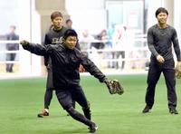 打撃練習をする阪神・島田海吏=宜野座(撮影・田中太一)
