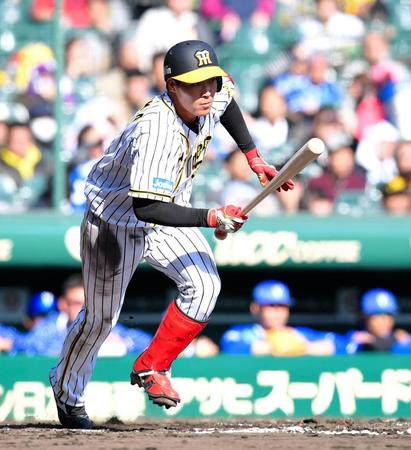 阪神・大山が笠井から右翼線へ適時二塁打を放った。1死一、二塁で迎えた六回の第3打席。フルカウントまで持ち込み、7球目をコンパクトに右へ。打球は一塁手の頭上を鋭く越えていった。