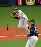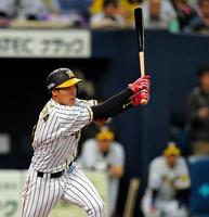 1回、中前適時打を放つ阪神・大山悠輔=京セラドーム大阪(撮影・北村雅宏)