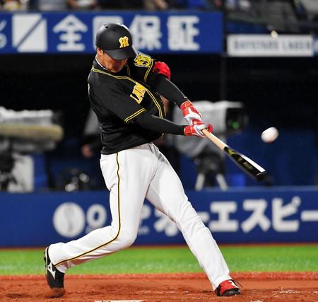 阪神の大山悠輔内野手が四回、先制の左犠飛を放った。