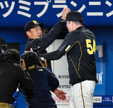 大山は3月31日の巨人戦以来、3試合ぶりの打点をマーク。これでチームは開幕から、5試合連続で先制点を奪った。さらに1点リードで迎えた八回、1死二塁で糸井が右翼直撃の適時二塁打。試合終盤での貴重な追加点に、ベンチで見届けたメッセンジャーも両手をたたいて喜んだ。