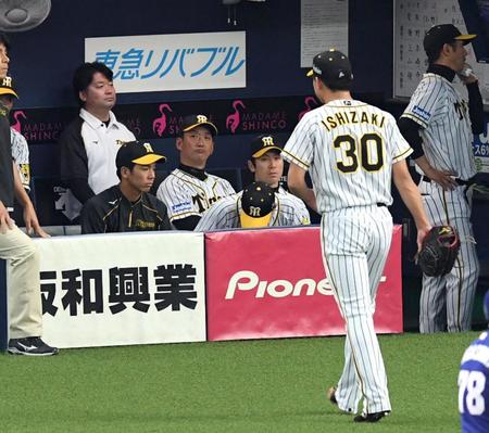 阪神の2番手・石崎剛投手が危険球で退場処分を受けた。