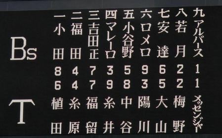 また、打線では3戦連続で糸井が「4番・右翼」でスタメン出場。古巣オリックス相手に打線の核を担う。また、「6番・一塁」には、2戦連続で陽川が入った。