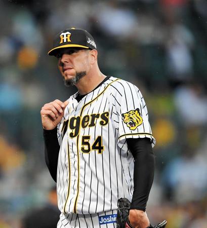 阪神先発のメッセンジャーが5回7安打3失点で降板した。
