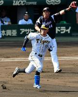 5回、梅野がバントを空振りし、三塁タッチアウトとなる鳥谷(撮影・高部洋祐)