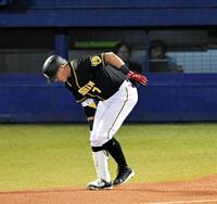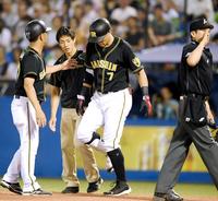 ヤクルト戦の8回、右足に死球を受ける糸井=6月30日