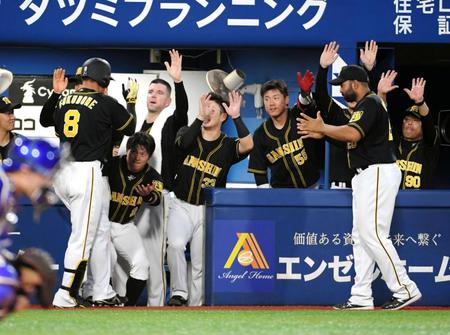 「先制のチャンスで回ってきた打席だったので走者を還すことだけ考えていました。速い球に合わせて自分のスイングで打つことができました」。さらに2死二、三塁からメッセンジャーが一、二塁間を破る適時打。ナバーロが2点目のホームを踏んだ。対戦防御率1・32と抑えられていたDeNAの先発・東を序盤から攻略した。