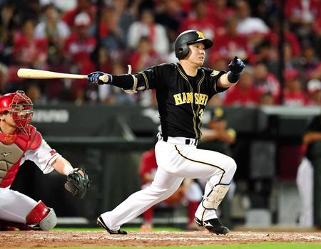 糸原のタイムリーでリード広げる 先発・岩貞は引退発表の代打新井から三振奪う