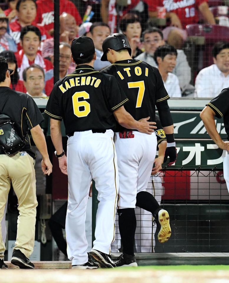 糸井、タイムリー直後に交代 ベース上で顔しかめる