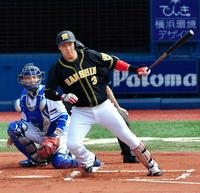 1回阪神1死三塁、先制の左前適時打を放った大山悠輔=横浜スタジアム(撮影・園田高夫)