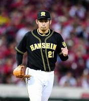 力投する阪神・岩田稔=マツダスタジアム(撮影・飯室逸平)