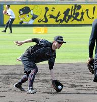 故障後初の屋外フリー打撃で快音を響かせる上本