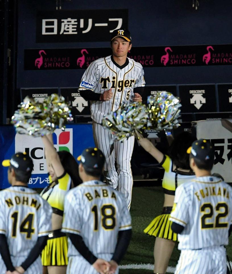 ドラ1近本が初回のピンチ救う 本塁好返球でヤクルトの先制阻止