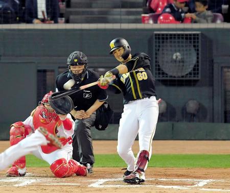 阪神が七回に逆転した。1-2と1点を追う2死一塁で、好投のメッセンジャーの代打・中谷が大瀬良から左翼ポールを直撃する今季1号の逆転2ラン。15年の6連敗以来となる3、4月の5連敗阻止へ向けて貴重な一打となった。