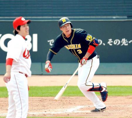らしさ全開の打棒でKOした。2点リードで迎えた五回2死二塁。「(自身にとって)タイムリーになったのも追加点になったのも大きい」。カウントは2ボール。敵の先発・九里が投じてきた外角低め目のスライダーを捉えた打球は左翼線への適時二塁打。九里をマウンドから降ろす一撃となった。