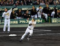 梅野が先制の2点三塁打!異例の記録訂正に観客沸く