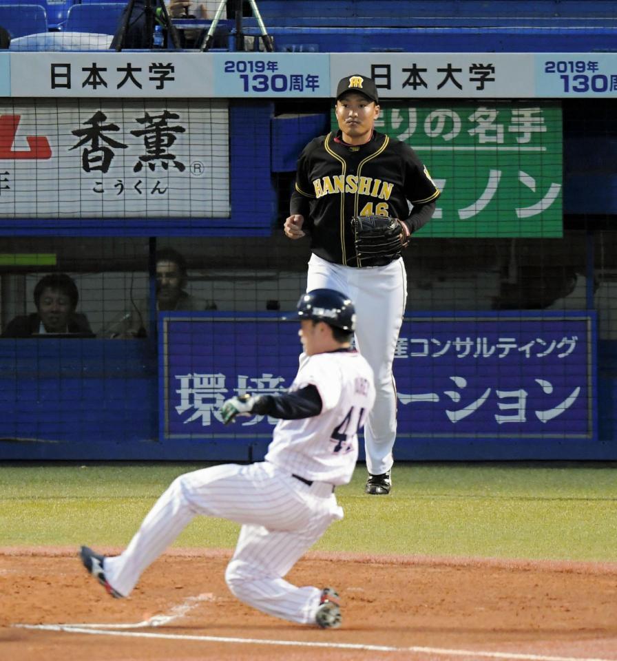 秋山が先制点献上 自らの暴投からみヤクルト・村上に適時打喫する
