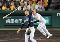 梅野の三塁ベースに当たるラッキー二塁打などで勝ち越し