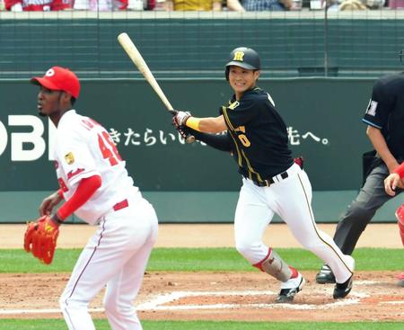 選手会長の一撃に打線が奮起。四球と安打で無死一、二塁とすると、ガルシアが犠打を決めて1死二、三塁と好機を拡大した。続く近本は、初球の直球を捉えると二塁手・菊池涼のグラブをかすめて右前へ。その間に三走・高山、二走・木浪が生還して2点を追加した。