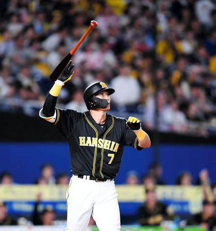 1点リードの八回。2死から糸原が中前打で出塁し、糸井に打席をつないだ。4番手・西野が投じた1ボールからの2球目、甘く入った146キロ直球をフルスイング。手応え完璧の打球は、失速することなく右翼席上段に突き刺さった。
