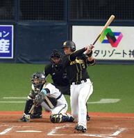7回阪神無死、オリックス・田嶋大樹(右奥)からチーム初安打となる中前打を放つ糸原健斗=京セラドーム大阪(撮影・吉澤敬太)