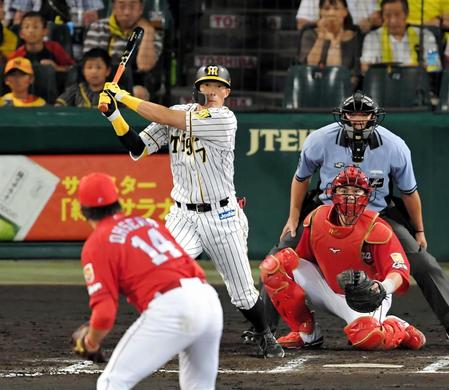 1-1の同点で迎えたこの回、先頭の近本が初球からセーフティバントを仕掛け、内野安打をマーク。すると、続く糸原が犠打かと思われたが、広島内野陣の打球処理がもたつく間に一塁ベースを駆け抜けた。後輩たちが足で作った無死一、二塁の好機に、3番・糸井が一振りで応えた。