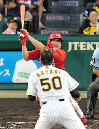 続く三回は1死から西川に右前打、2死から鈴木の左前打で一、三塁のピンチを招く。続く松山が放った打球は中前のフライ。打球は懸命にチャージして捕球を試みた近本のグラブの前にポトリと落ち、一気に2点を失う適時二塁打となり、試合は振り出しに戻った。