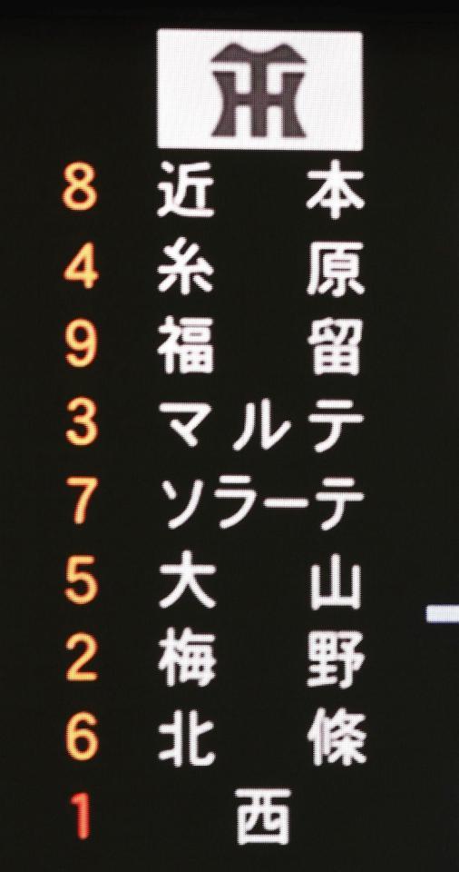 大山が今季初の4番降格 糸井抹消で福留、マルテ、ソラーテのクリーンアップ