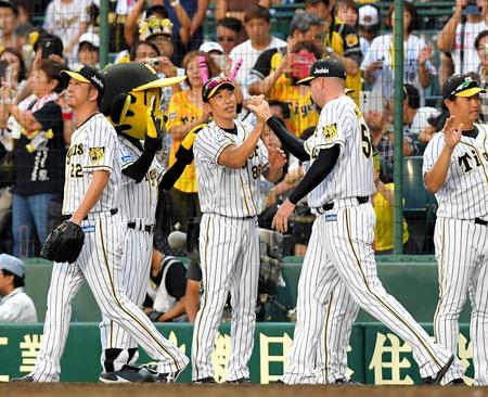 執念がにじみ出た。引退登板となったメッセンジャーから高橋遥、ガルシア、岩崎、ドリス、ジョンソン、藤川と小刻みにつなぐ継投。4試合連続完封こそ逃したが、一丸で勝利をつかんだ。