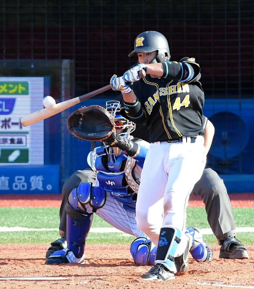 梅野の右犠飛で2点差に迫る 大山が二塁打で好機演出