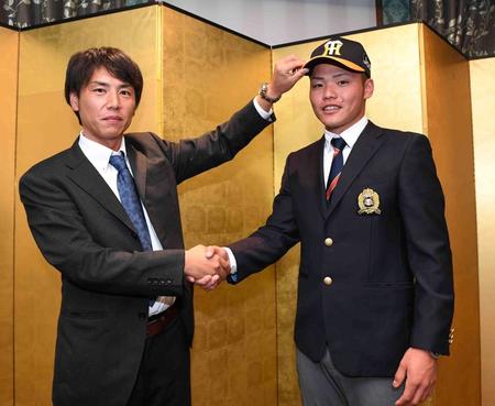 金びょうぶの前に腰を下ろすと、緊張した面持ちを浮かべた。だが、自身の思いを言葉に乗せ、これから挑む舞台を前に強い決意を口にした。育成からのスタートになるが「一日でも早く支配下登録されるように頑張って、甲子園で自分のホームランを見せられるように頑張ります」と意気込んだ。