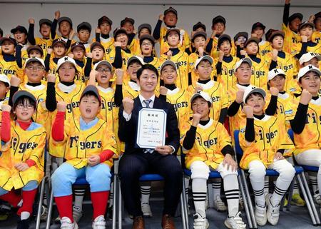 阪神・近本光司外野手(25)が18日、出身地である兵庫県淡路市の淡路市役所を訪問し「淡路市スポーツ親善大使」の委嘱式に出席した。門康彦淡路市長(73)から正式に親善大使の委嘱状を渡された近本は「僕が今まで育った淡路島で子どもたちや島の住んでいる方たちに元気や希望を与え、盛り上げて行ければ。来年、何らかの形で協力ができたらいい」と話した。