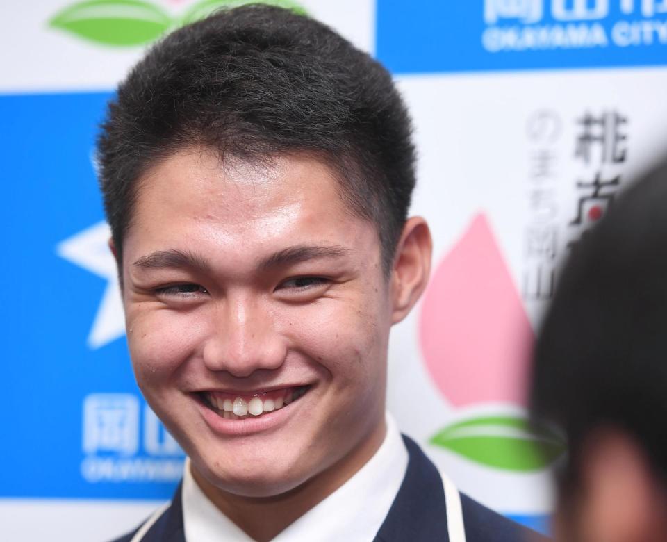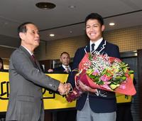 ドラ1・西純矢 岡山市表敬訪問 今年の漢字は「叶」