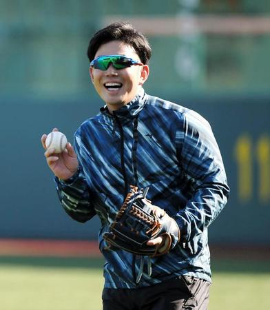 昨日は関東各地で雪が降っていたが、この日は雲一つない青空が広がっていた。心地良い風を受けながら糸原はウエート、ティー打撃やランニング、キャッチボールなどを消化した。