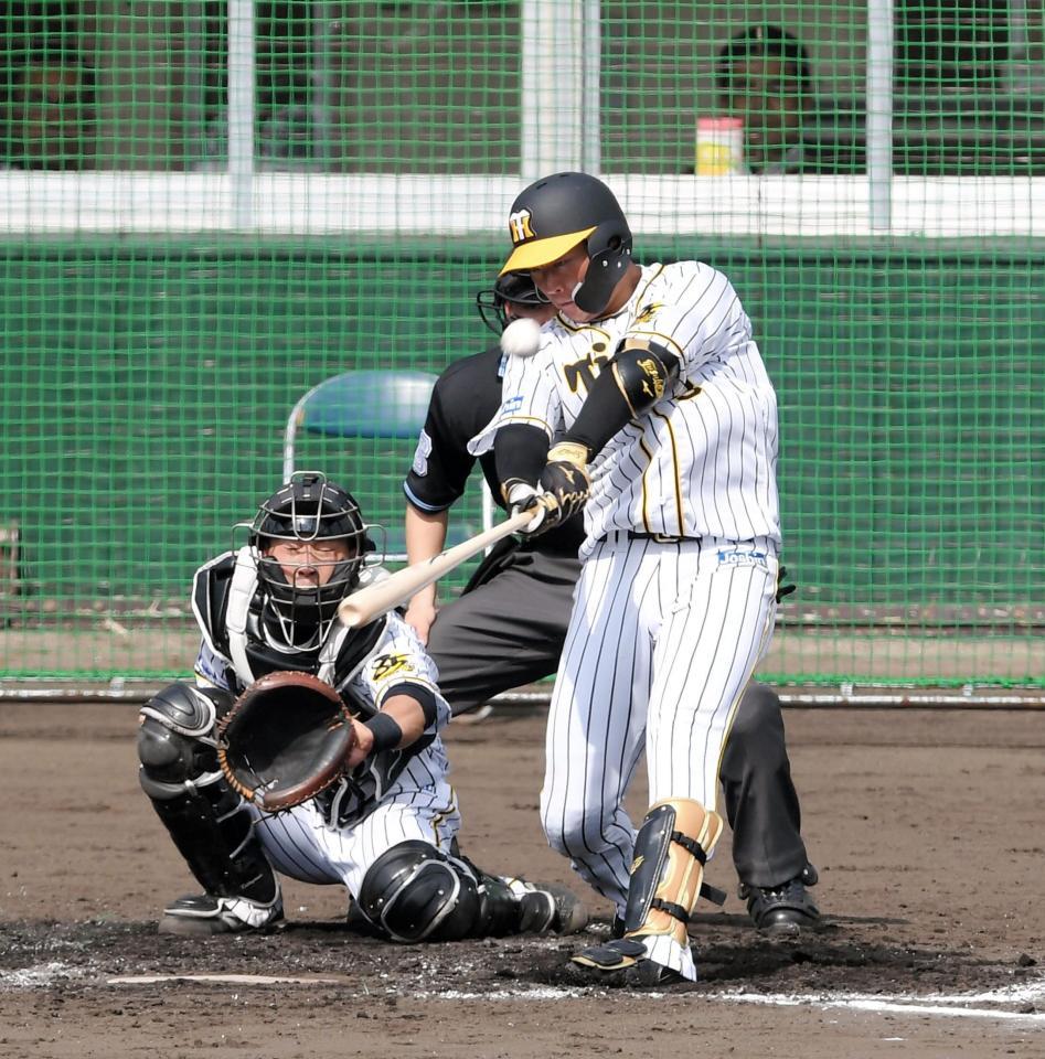 阪神大山がシート打撃で特大の一発! 馬場の変化球を会心打