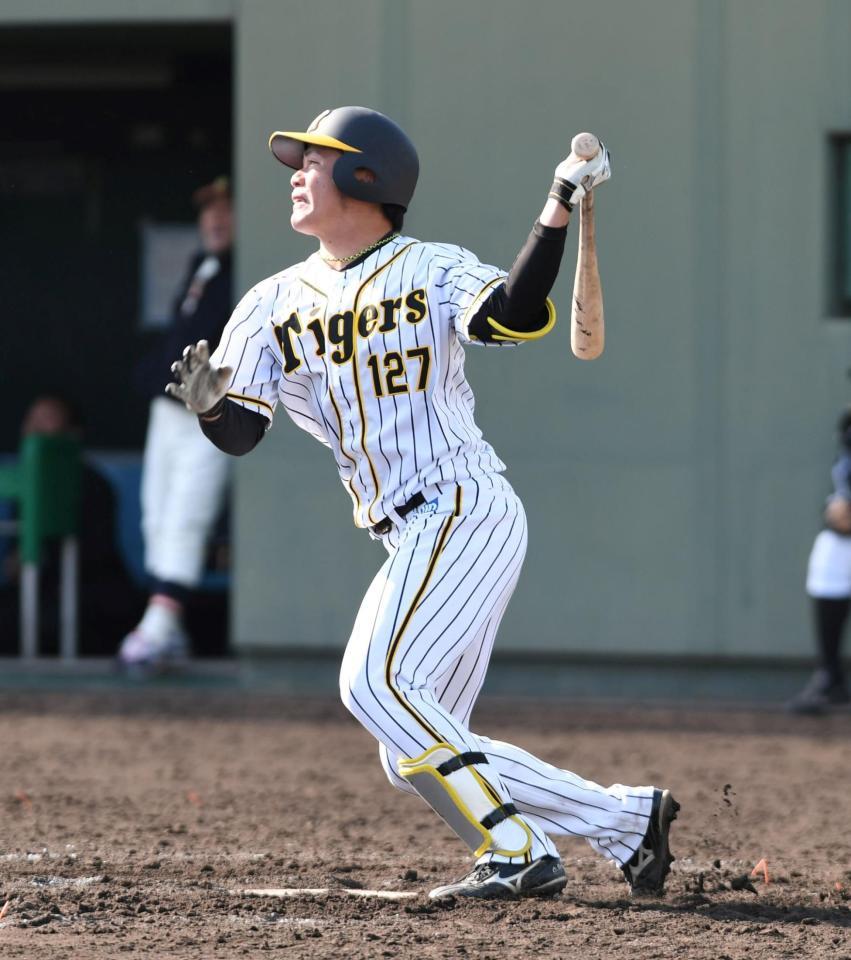阪神・育成ドラ1小野寺 初弾!母校相手に2安打3打点 支配下へ弾み