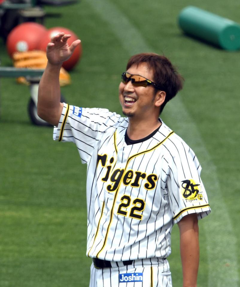 阪神・藤川が屋外練習を再開 3日の練習試合で腰に張り