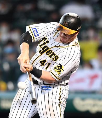 目覚めた助っ人のバット。二回1死走者なしで迎えた第1打席で右前打を放ち、8試合連続安打とした。さらに六回にはコンパクトなスイングで2番手左腕・長谷川の152キロ真っすぐを中前へ。その後、二塁から梅野の中前打で巨体を揺らしてホームに滑り込み、チームを鼓舞した。