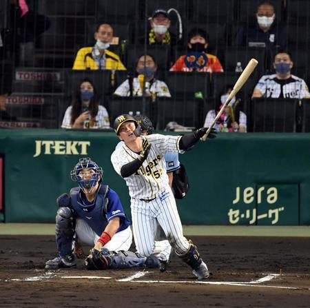 1点を追う六回。1死一、二塁で打席が巡ってきた。カウント1-1から福谷が投じた3球目、真ん中付近に浮いたフォークをフルスイング。完璧に捉えた打球は左中間席へ。中堅・大島が途中で追うのを諦める今季1号は逆転3ランとなった。
